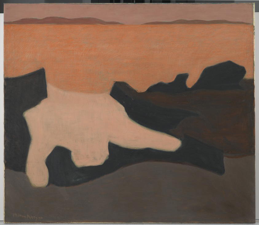Milton Avery American, 1885–1965. Sunset, 1952. Oil on canvas, 42 1/4 x 48 1/8 in. (107.3 x 122.2 cm) Frame: 44 x 50 x 2 1/2 in. (111.8 x 127 x 6.4 cm). Brooklyn Museum, Gift of Roy R. & Marie S. Neuberger Foundation, Inc., 58.40. © artist or artist's estate (Photo: Brooklyn Museum, 58.40_PS2.jpg)